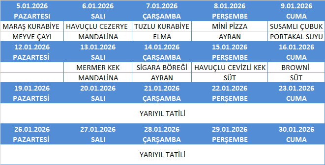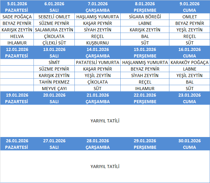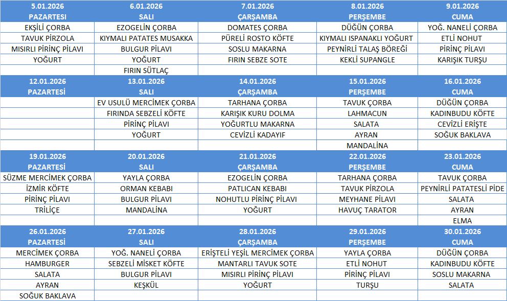 OCAK AYI YEMEK MENÜSÜ