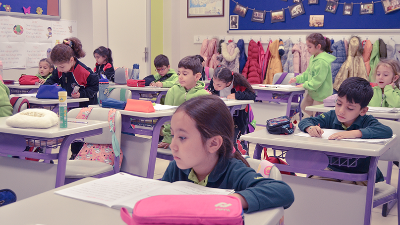 Sınıflarımız Sınıflarımız geniş ve aydınlık mimari yapısının yanı sıra, rahatlık ön planda tutularak ergonomik mobilya donanımıyla öğrencilerimizin keyifli bir ders ortamı geçirecekleri şekilde tasarlanmıştır. Her sınıfta öğrencilerin kişisel eşyalarını ve ders materyallerini koyabilecekleri dolapları bulunmaktadır. Bilgisayar, tepegöz, projeksiyon makinası, akıllı tahta gibi araç ve gereçlerle donatılan sınıflarımızda öğretmen ve öğrencilerimiz teknolojinin tüm imkanlarından faydalanabilmekte ve derslerini çağdaş bir ortamda işlemektedirler.